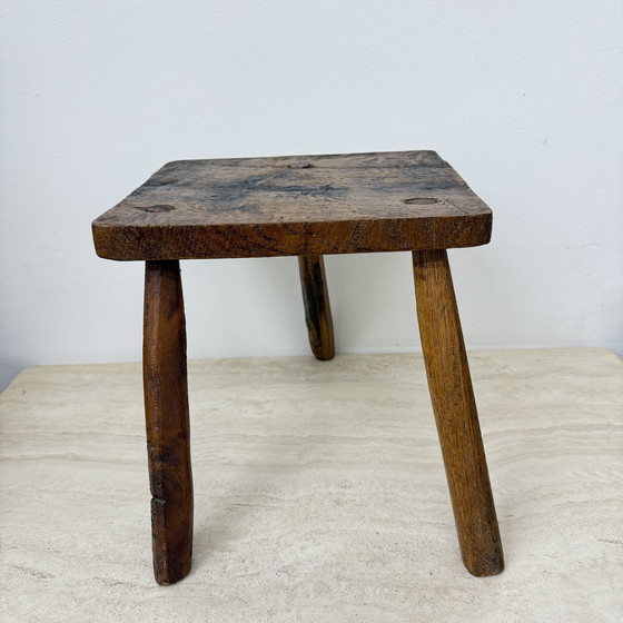 Vintage Brutalist Solid Wooden Stool Side Table