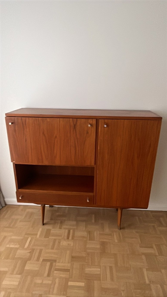 Scandinavian 60s storage unit in rosewood veneer. Various storage spaces. Good condition with some wear. Can be used as a desk.