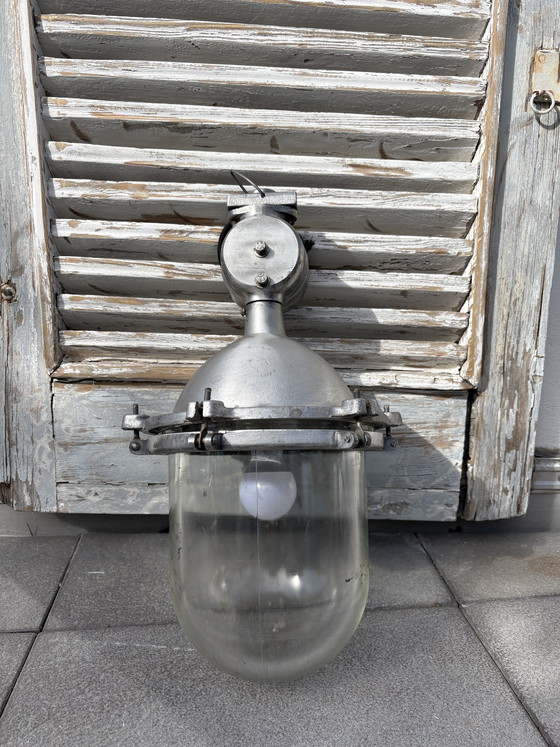 Vintage bunker ceiling light. Restored by WorksBerlin. Fully functional. Minor signs of wear on the glass due to age.