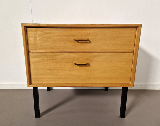 Super cool small chest of drawers from the 1960s by Kempkes Furniture Factory. It can serve as a cabinet, but of course also as a bedside table. Good vintage condition with light signs of use consistent with its age.