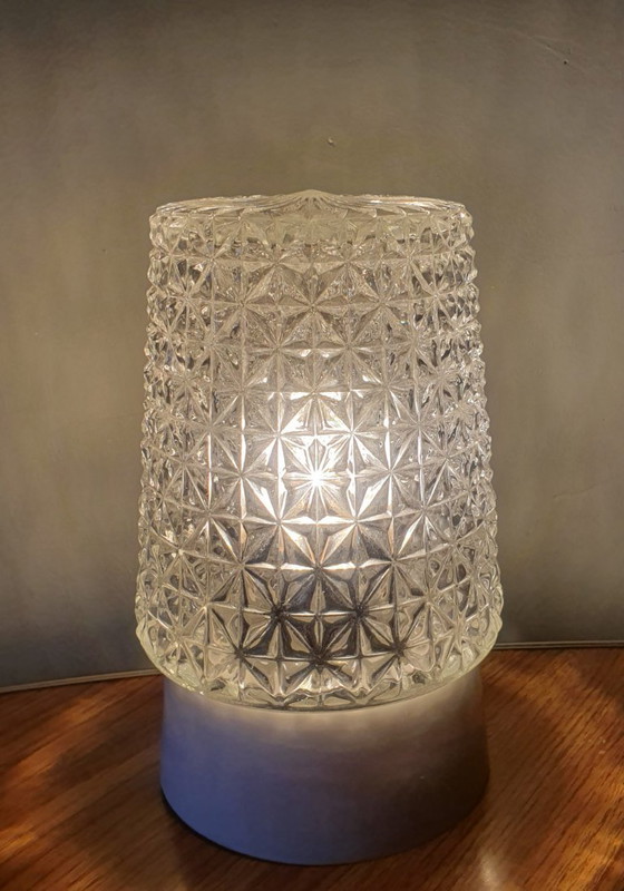 glass lamp, clear glass, faceted glass, vintage, table lamp, mood lighting, retro style, designer lamp, crystal look, interior, lighting