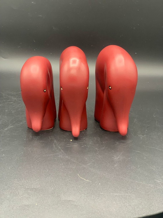 Discover the charm of these beautiful vintage ceramic figurines from Elki Steengoed Holland. These elegant elephant figures, crafted in a warm red hue, add a touch of refinement to any room.