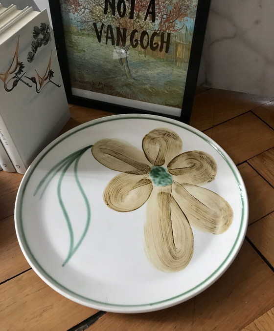 Large vintage round dish. Salins France ceramics (Franche-Comté since 1858, bought by Sarreguemines in 1968). Unalterable hand decoration. Floral design in beautiful pastel colors. Very good condition. Diameter 30.5 cm. Height 2.5 cm. Shipment by Mondial Relay or Colissimo on request.
