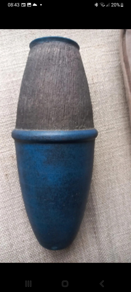 This beautiful vintage ceramic vase from the 1950s is a true eye-catcher in any interior. With its elegant shape and rich blue hues, it adds a touch of timeless charm to your living space. Perfect for displaying flowers or as a standalone piece of art, this vase embodies the refinement of the mid-20th century.