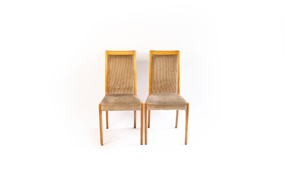 These original vintage chairs from the renowned German manufacturer Casala impress with their clear design, comfortable upholstery and durable quality. The beautifully shaped wooden frame meets simple elegance - ideal for dining rooms, home offices or stylish waiting areas.