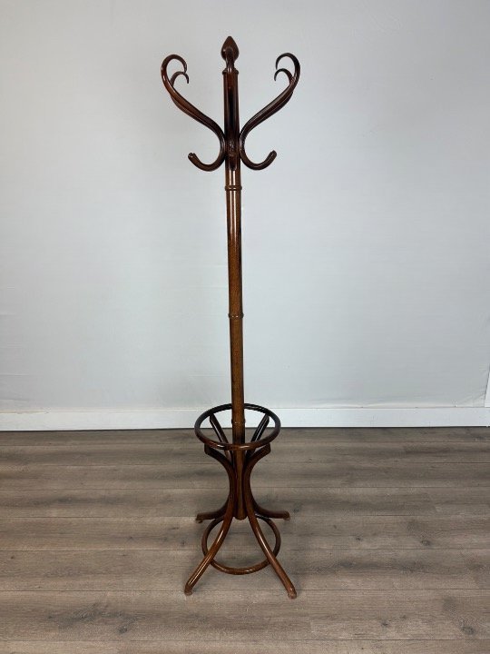 Additional information: This model is a classic example of bentwood, a technique that made Thonet world-famous. Original Thonet coat racks are recognizable by their elegant curlicues and solid construction. The design is not only functional but also highly decorative, often used in cafés, hotels, and reception areas.