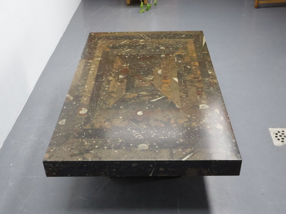 The table, which consists of two parts, is made of natural stone, Sahara fossil in beautiful colors.