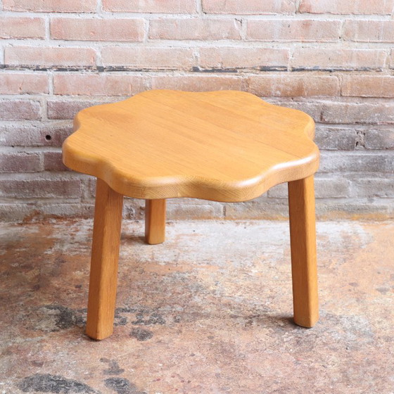 A beautiful small oak coffee table in a flower shape and light color. Ideal as a small coffee table or side table. In good vintage condition with some minor signs of wear.
