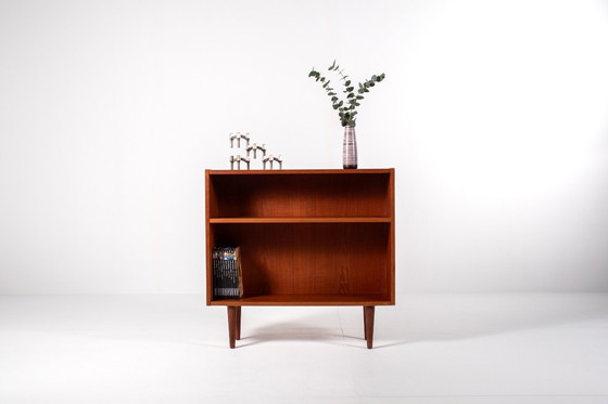 This authentic Mid-Century Modern teak bookcase was crafted in Denmark by Sejling Skabe, a respected Danish furniture maker from Silkeborg known for elegant and functional Scandinavian design during the 1950s–1970s. Designed with clean lines and warm teak tones, this compact bookcase is a perfect example of Danish craftsmanship and versatility.