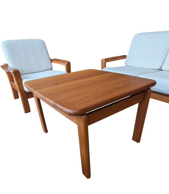 Beautiful, teak coffee table from Denmark. The table is square, the top is made so that it seems to float. Very beautiful!