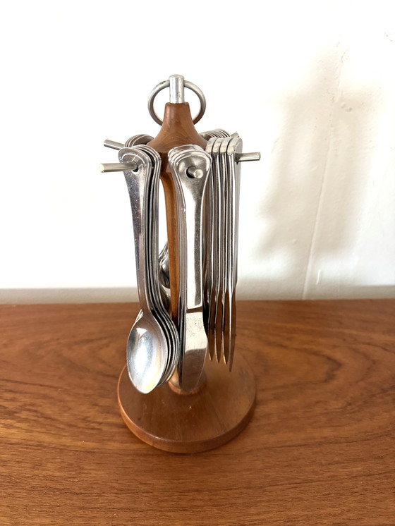 Vintage Danish teak spindle with pantry cutlery designed by Henning Seidelin for the Danish company Gense, 1960s.