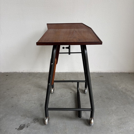 Step back in time with this charming vintage Danish typewriter table, doubling as a sleek sidetable. Crafted from rich teak wood, its warm brown tones bring a touch of mid-century elegance to any room. The sturdy metal legs add a modern twist, making it a versatile piece for both classic and contemporary spaces.