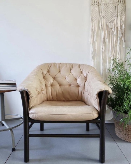 ConditionGoodColorsBeigeMaterialWood, LeatherNumber of items1BrandGöte MöblerHeight80 cmWidth85 cmDepth80 cmSeat height44 cmSigns of usageScratches, Crack