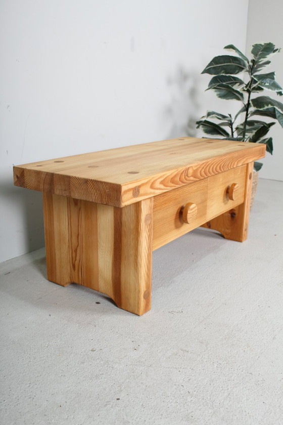 This vintage entryway bench was designed by Ruben Ward for the Swedish company Fröseke. This designer bench or small chest of drawers is made of solid pine and dates from the 1970s.