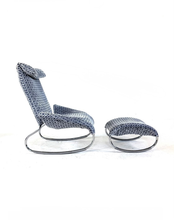Vintage design tubular frame rocking chair + ottoman, Italy, 1980s.