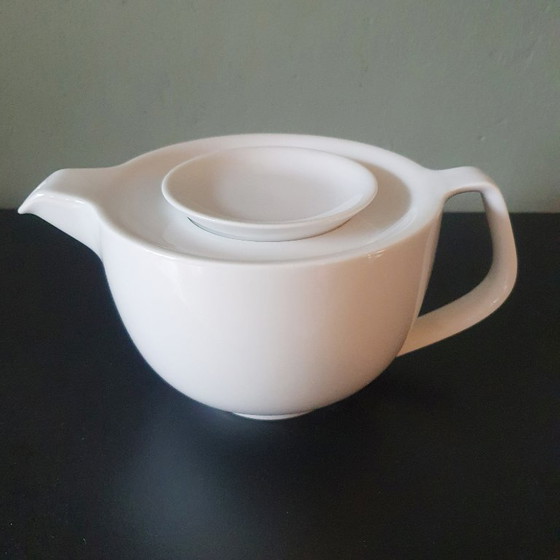 This white teapot is made by Thomas, Rosenthal Group, Germany. It features a sleek, minimalist design from the 1980s and 1990s.