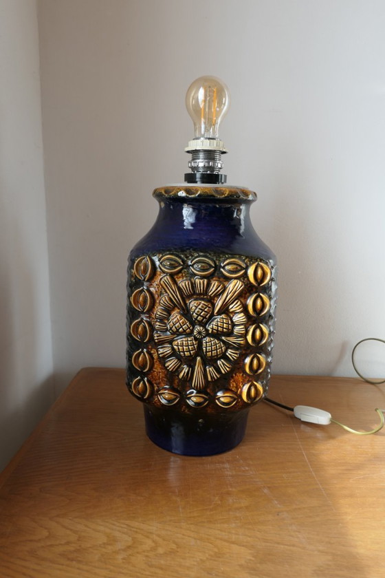 Vintage Dümler & Breiden ceramic floor lamp Studio 73, blue ochre. Ceramic dimensions: L x W x H = 21 x 20 x 37 cm. In very good condition.