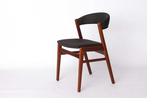 Dining chair, crafted by Swedish manufacturer DUX in the 1960s, features the unique 'Ribbon Back' design, where the backrest curves elegantly like a ribbon. Made from sturdy teak wood, these chairs provide a stable structure with no cracks or previous repairs. The high-quality skai material (artificial leather) upholstery offers comfort and mid-century modern charm.