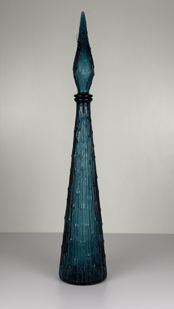 Vintage Empoli carafe bottle wax drip genie bottle bamboo blue