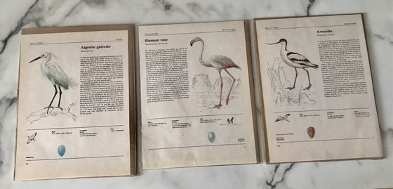 Set of 3 bird illustrations. Issues livre d'oiseaux d'Europe, éditions Gründ 1978. Author: J. Félix, Czech zoologist (1929-2008). Illustrator: K. Hisek Czech (1931-2016). - Little Egret, - Greater Flamingo, - Avocet. 29 x 21 cm To be framed.