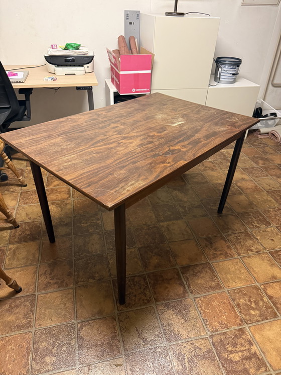 Beautiful vintage extendable dining table made of taekwondo wood. Includes the original extension. There are signs of wear on the surface.