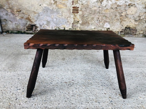 Both sturdy, stable, and functional, this fantastic, rustic piece of craftsmanship is perfect to use as originally intended: a side table or even a plant stand.