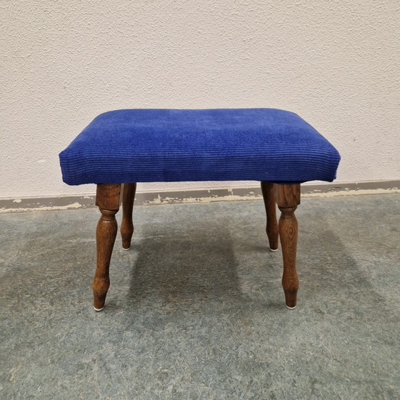 Experience the charm of the 1960s with this beautifully restored vintage footstool. Upholstered in a vibrant cobalt blue corduroy, this stool offers not only comfort but also a striking aesthetic that can enliven any space. The sturdy oak frame demonstrates craftsmanship and durability, making it a timeless addition to your interior.