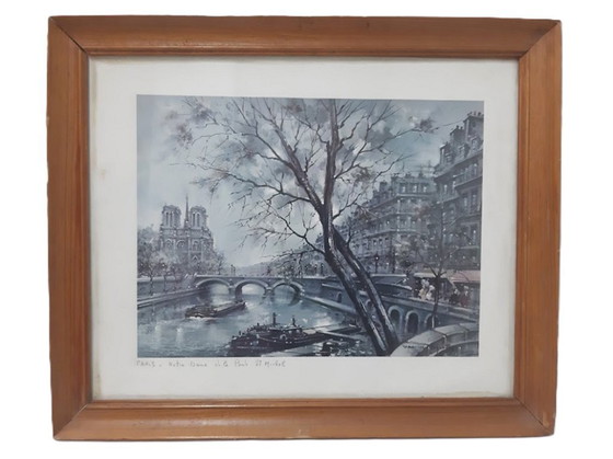This is an original vintage lithograph of Notre Dame De Paris. It looks a lot like watercolor but it is a vintage lithograph. It was printed in France circa 1970s. The print is in vintage wooden frame with dimensions: 19, 63x 16,33 inches. Size of the image is 13.58 x 10 inches.Lithography is a method of printing in which paint is transferred from a flat printing plate to paper under pressure.