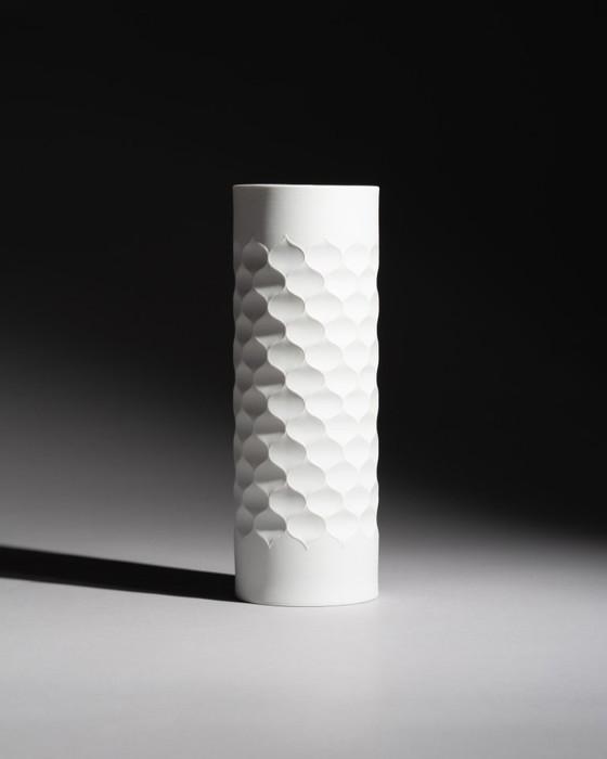 Scherzer Vase by Werner Uhl – Mid-Century Modern Op Art in Matte Bisque Porcelain | Model 502-2, 1970s