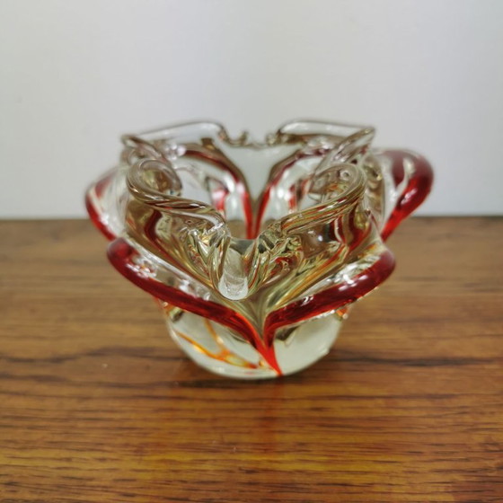 Vintage Murano glass serving dish in the shape of a butterfly. This clear red glass tea light holder, made around 1970, is a feast for the eyes. With this beautiful glass ashtray, you'll be adding a truly special object to your home, thanks to its unique design.