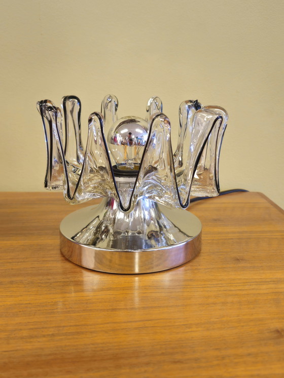 Vintage table lamp made of Murano glass with black edges and chrome base.