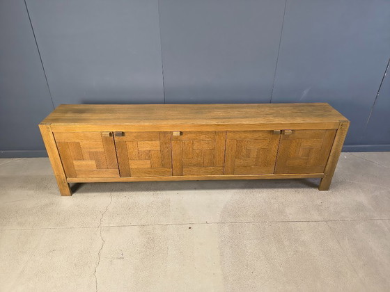 Vintage inlaid grained oak tile sideboard with 5 doors by Frans Defour for Defour.