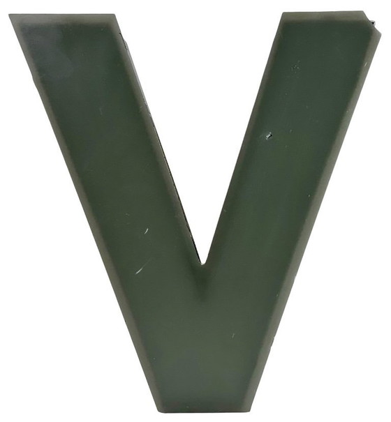 This vintage industrial illuminated letter “ V “ was made in Germany during the 1970s and comes from an old advertising banner. It features a black metal body and a grey plastic cover. It is equipped with a LED strip. The letter can be used as a table lamp or wall lamp.The weight of the letter is 0,4 kg.