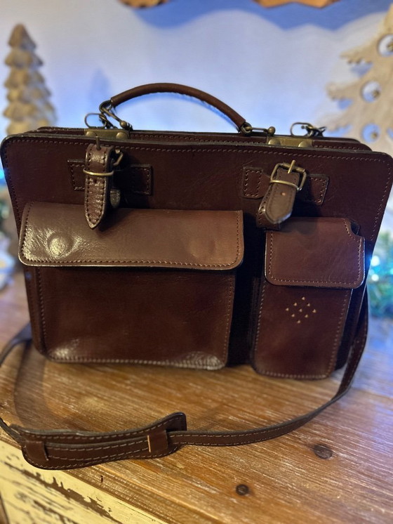 ConditionVery goodColorsBrownMaterialMetal, LeatherNumber of items1Height22 cmWidth31 cmDepth8 cmSigns of usageScratches