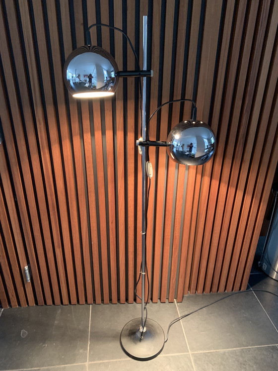 Illuminate your space with the timeless elegance of the Vintage Herda floor lamp. This exquisite piece, with its sleek black and silver finish, is a perfect blend of form and function, making it an ideal addition to any room seeking a touch of vintage charm.
