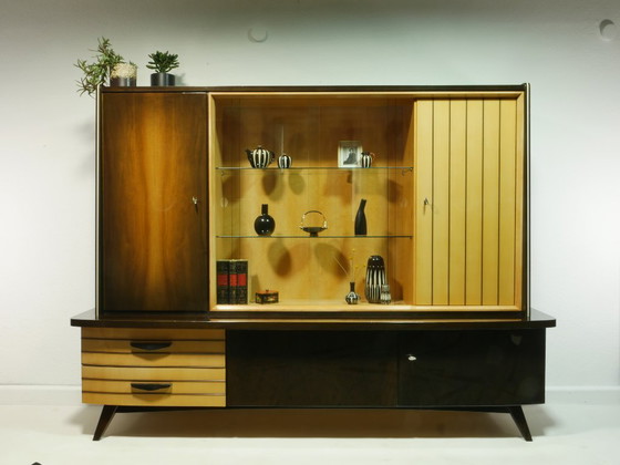 This original highboard from the 1960s consists of two components and has a high-quality finish.