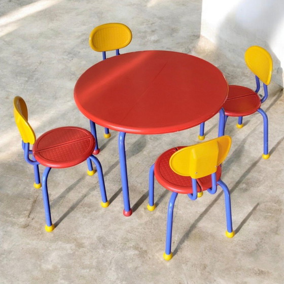 This set, made in Italy, is known for its bright primary colors (red, yellow, and blue) and playful geometric shapes. It is not only functional children's furniture but also a sought-after collector's item, even included in the collection of The Museum of Furniture Studies in Stockholm.