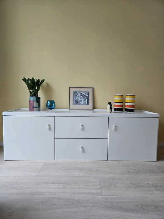 Give your interior a stylish upgrade with this rare IKEA Vinstra sideboard. This piece is a beautiful example of the high-quality design IKEA introduced in the 1990s. With its high-gloss white finish and unique, rounded corners, it's a timeless piece that's now completely on trend.