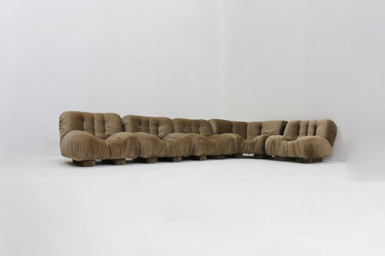 Vintage modular sofa from Italy, designed by Rossi di Albizzate in the 1970s. This modular sofa consists of 5 elements, including a corner element, and has a rounded, curved shape.