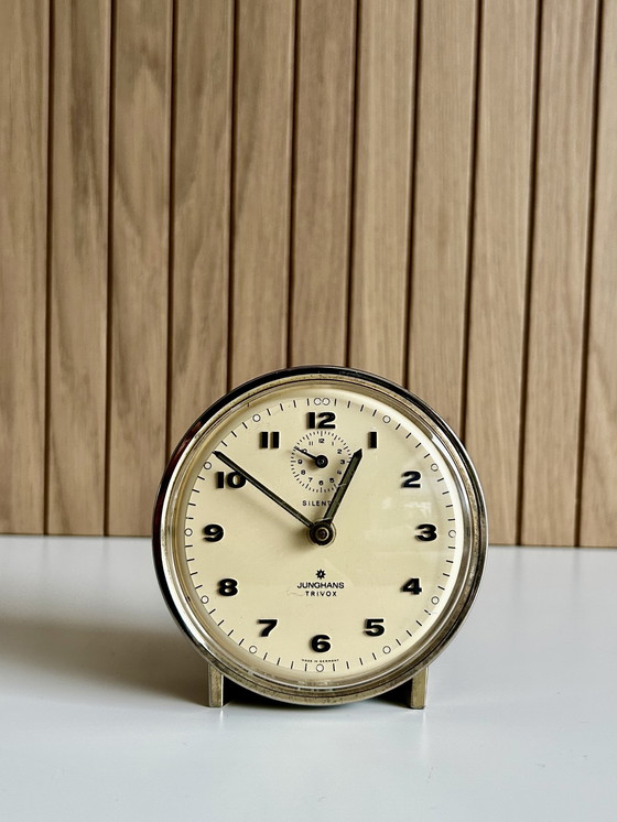 Original mechanical Junghans Trivox alarm clock from Germany. Known for its high-quality movement and sleek, functional design.
