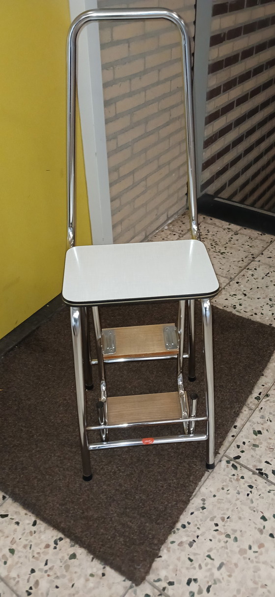 Discover the charm of this vintage kitchen step stool/chair by Rego Gilze Holland. This versatile piece of furniture combines functionality with a retro look, perfect for any kitchen or workspace.