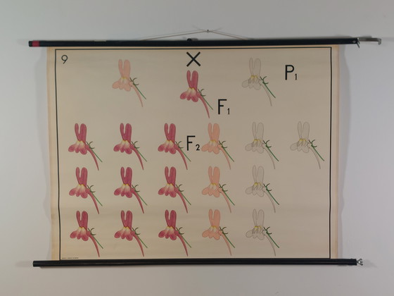 Discover the fascinating world of biology with this exquisite vintage linen roll-up map. Illustrating the genetic diversity and hybridization of plants, this map is a true work of art that will delight both collectors and lovers of stylish interiors.