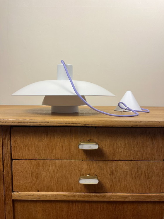 This is the iconic Louis Poulsen PH4/3, the little brother of the PH5. Its unique design casts a soft, glare-free light, creating a warm and inviting atmosphere.