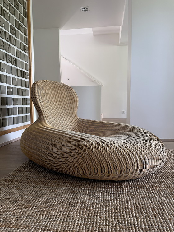 Manufacturer l Brand l Designer: Ikea, Carl Öjerstam Production period: 2001 - 2005 Style l Design l Form: A design icon from the Swedish furniture store. The design was by Carl Öjerstam. The armchair was produced in limited numbers at Ikea Sweden from 2001 to 2005 and won the Red Dot Award in 2002. It features a bamboo frame with rattan weaving. A timelessly beautiful design classic. Height: 79 cm | Width: 105 cm | Depth: 130 cm | Seat height: 23 cm Colors: Natural Material: Bamboo l Rattan Condition: Very good, with minor signs of age-related wear and production-related color or structure variations*, see photos. Item number: 01359