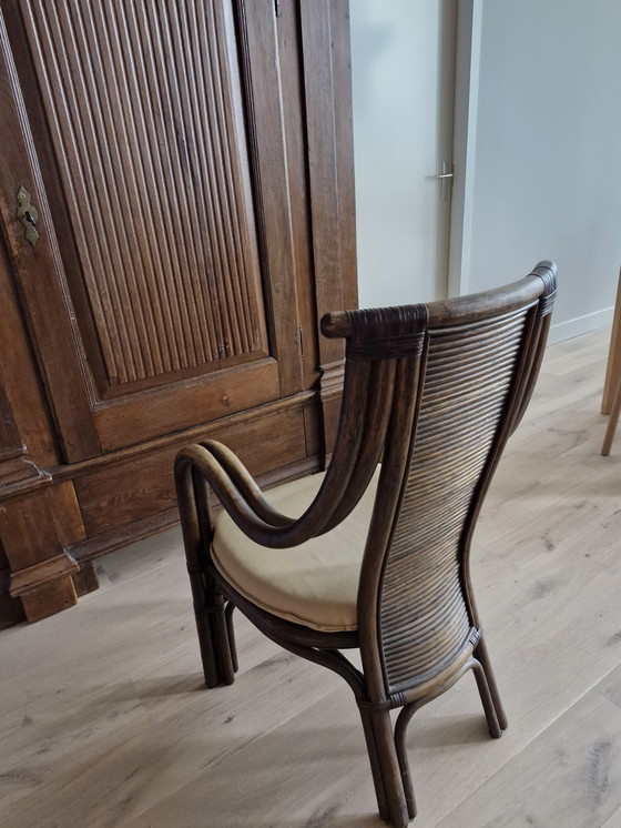 ConditionGoodColorsBrown, CremeMaterialRattanNumber of items1First ownerYesHeight100 cmWidth58 cmDepth50 cmSeat height44 cmSigns of usageDiscoloring, Crack