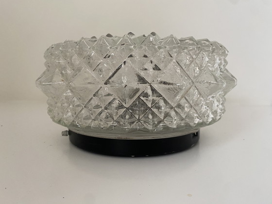 A beautiful vintage ceiling lamp from MASSIVE, dating from the 1970s. The shade is made of beautiful, thick glass and features a diamond pattern that creates a wonderfully vibrant light.