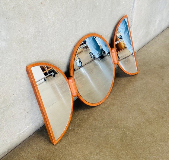 Vintage Mid Century style Danish Design PEDERSEN & HANSEN heavy massive teak wooden wall mirror from the 60s/70s