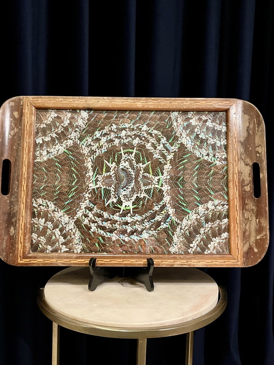 Exceptional vintage tray by Zitrin-Rio, made with real butterfly wings in a decorative mosaic composition under glass. A striking and stylish object from the 1950s–1970s, originating from Brazil.