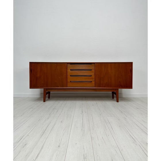 Beautifully shaped vintage sideboard from the 1960s. Elegant credenza in danish design made out of teak wood. Neat condition with age-related signs of use consistent with age.