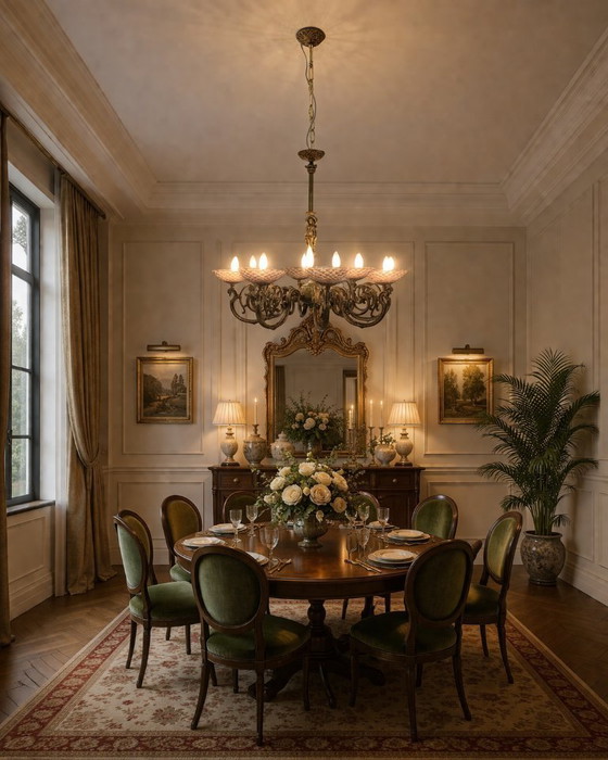 Beautiful eight-light chandelier in brass and bronze with signature Seguso plates. This classic-style pendant chandelier is crafted from bronze and features a richly decorated structure with curved, scroll-like arms that extend symmetrically around a central body. Eight light sources, arranged in Seguso-designed glass cups with a diamond-effect relief, diffuse a warm, enveloping light. The slender central shaft is embellished with a figurative sculptural element that adds a distinctive ornamental touch, complemented by chiseled details and a chain suspension that enhances its elegance and antique-inspired character. The electrical system has been redone. Only the chandelier is being sold.
